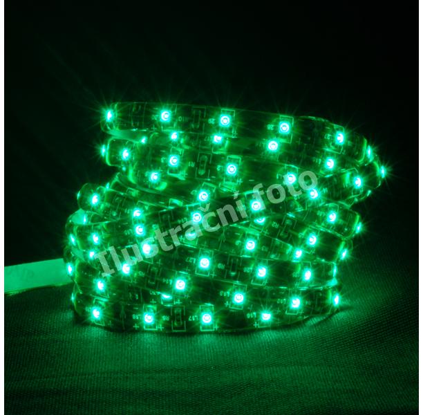 LED pásek SMD3528 zelená, 30 led/m, IP54, DC12V, 8mm, bílý PCB pásek